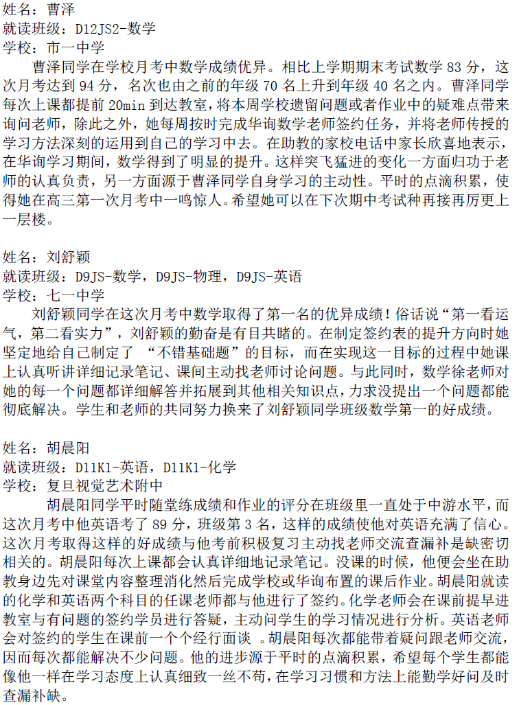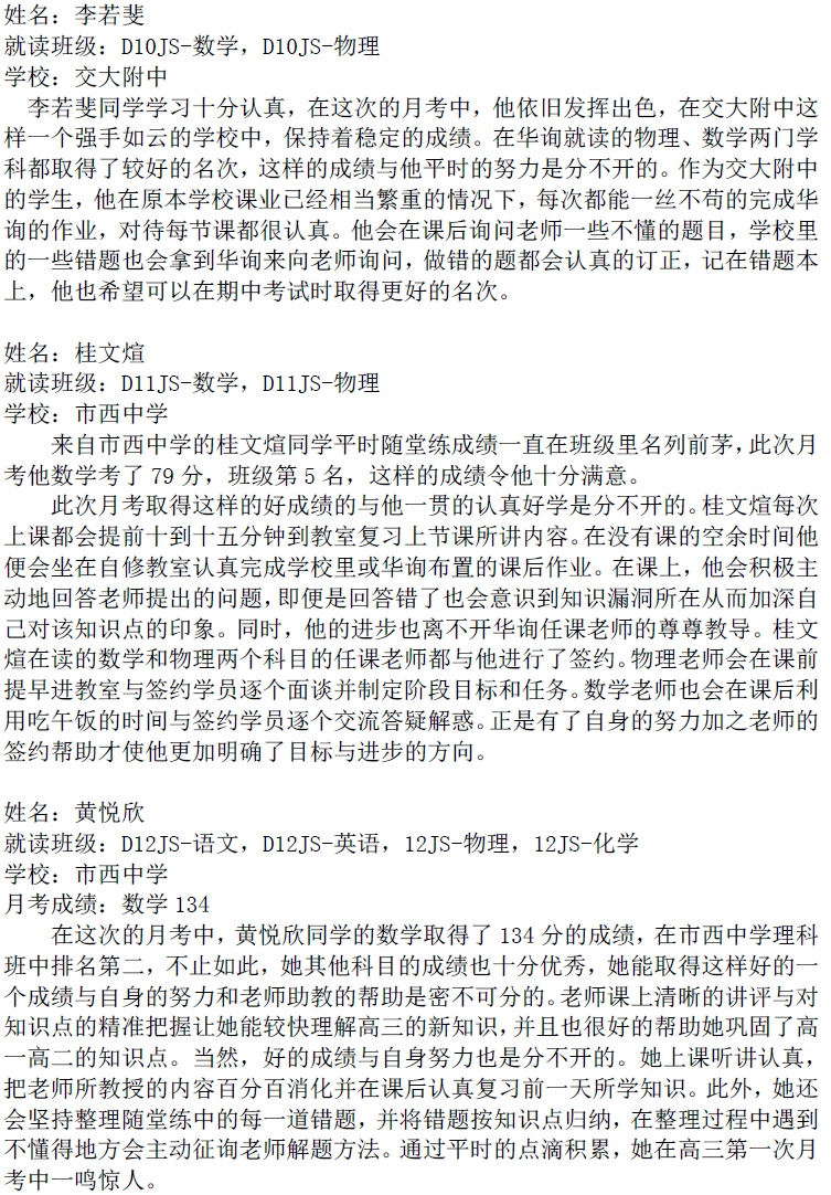 華詢(xún)教育階段成績(jī)展--第一次月考(東海篇)