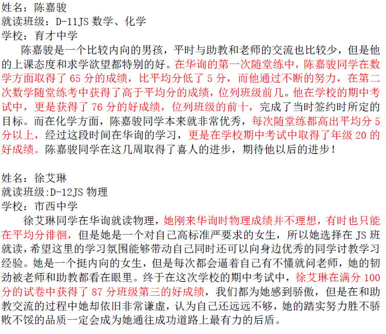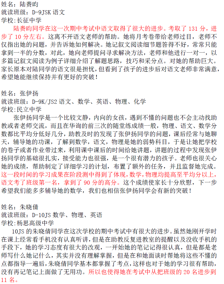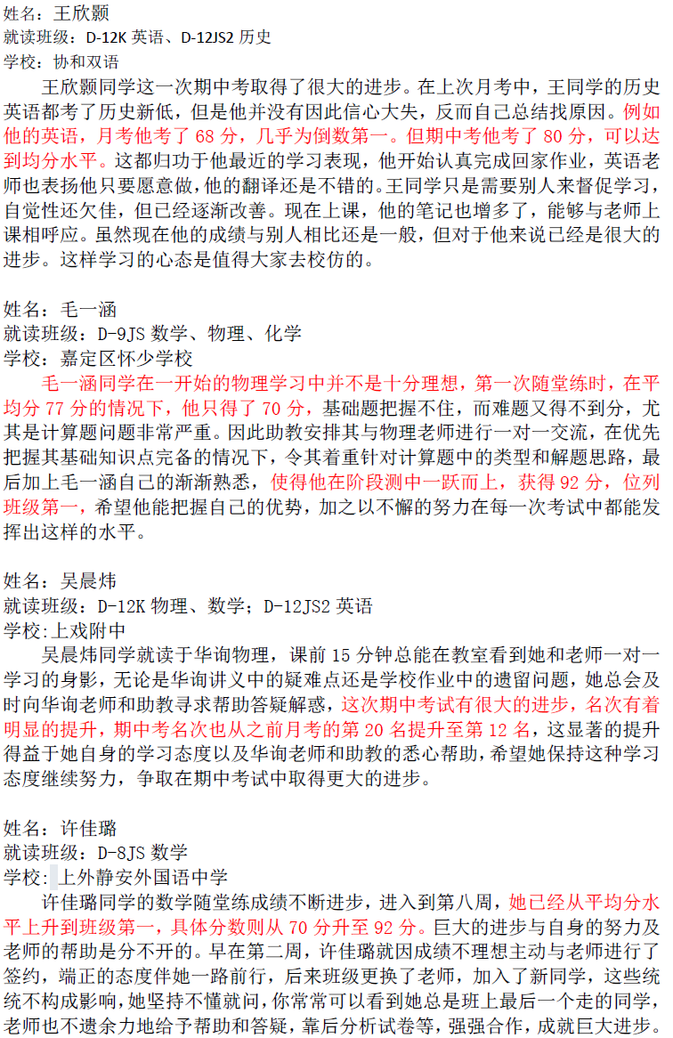 華詢教育階段成績展--階段測+期中(東海篇)